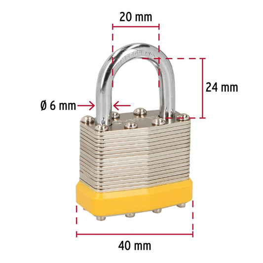Candado laminado 40MM recubierto de plástico SKU:'43367