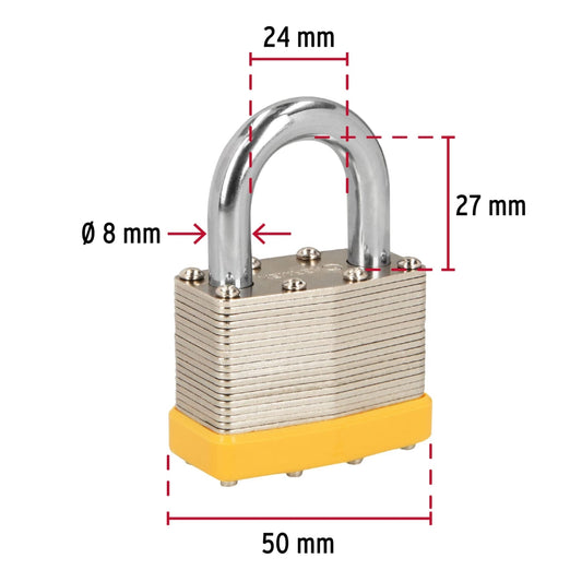 Candado laminado 50MM recubierto de plástico SKU:'43368