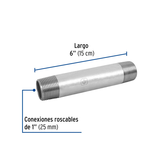 Niple 1 1/4" x 6" galvanizado SKU:'48831