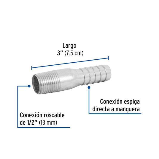 Niple con espiga 1/2" galvanizado SKU:'48175
