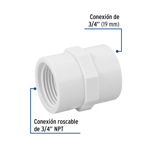 Adaptador hembra 3/4" PVC cédula 40 SKU:'45433