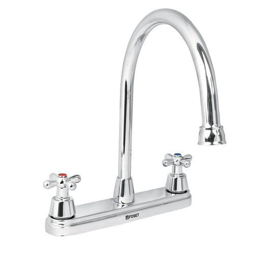 Mezcladora metálica 8" cuello alto p/fregadero manerales tipo cruceta (Aqua) SKU:'49686