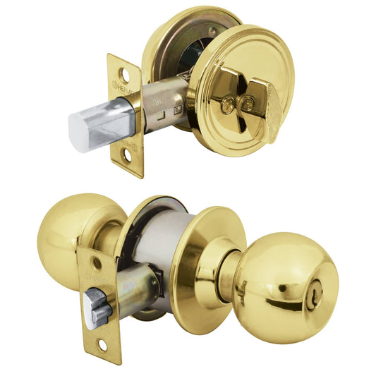 Juego cerraduras pomo y cerrojo llave-llave color latón brillante SKU:'23619
