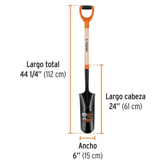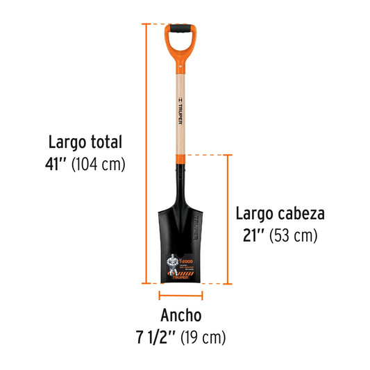 Pala cuadrada T-2000 mango largo 45" SKU:'17176