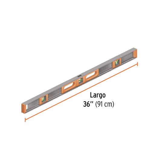 Nivel aluminio y ABS 36" 3 gotas SKU:'17038